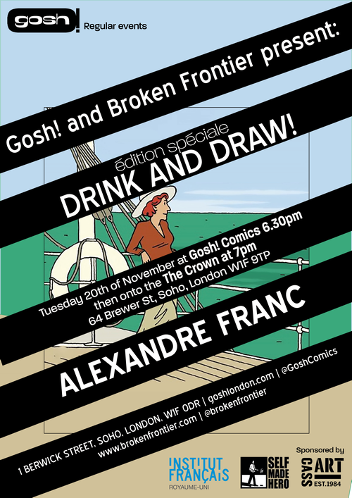 Alexandre Franc is the guest artist at this week’s Gosh! and Broken Frontier Dink and Draw on Tuesday November 20th in conjunction with the Institut Francais.