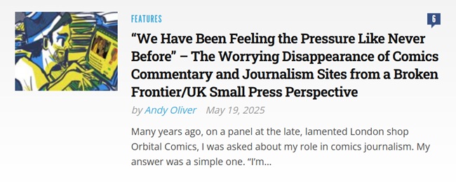 Welcome back to another beginning of the month look at our behind-the-scenes happenings at Broken Frontier. January shot by but, of course, our key posts this month where the results of the Broken Frontier Awards for 2025 (congratulations to both winners and shortlistees) and the announcement of this year’s Broken Frontier ‘Six to Watch’. An awesome line-up of artistic talent I am sure you will agree!
