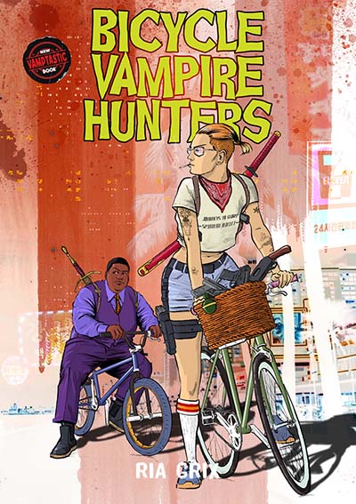 Grix’s unlikely hunters of supernatural horror may not look the part given their humble push-bike modus operandi but Cleo Finkelstein (a seventh generation vampire slayer) and Bryn Davies (who wields the ominous sounding Sword of Zaragoza) are determined to root out and destroy that most nefarious vampiric threat to the natural order – the day-walkers.