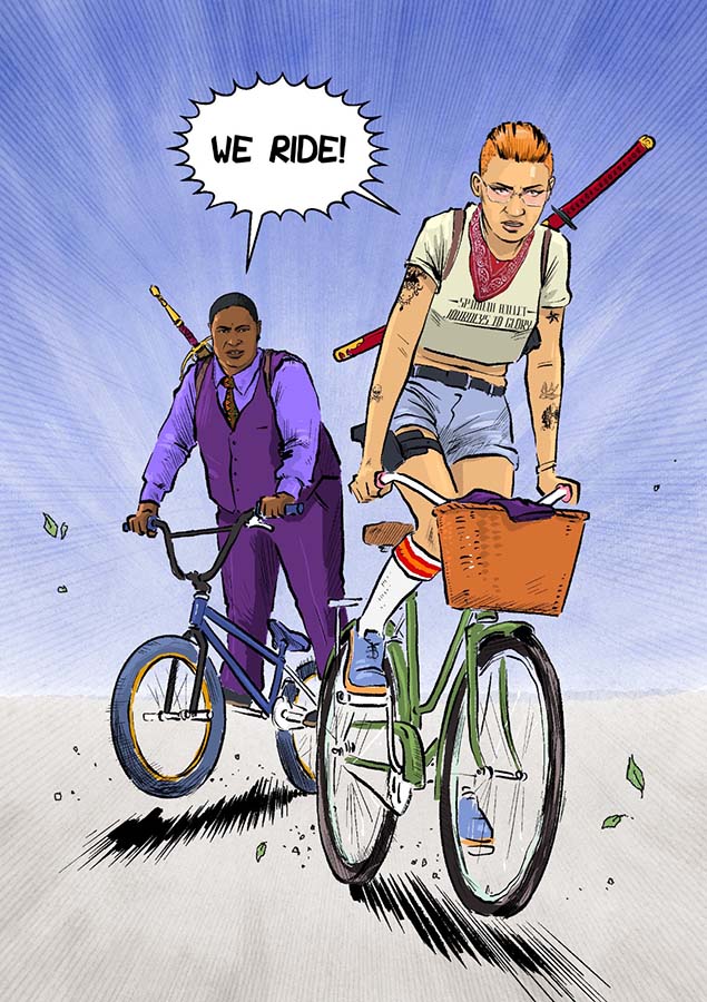 THOUGHT BUBBLE MONTH 2025! That we learn more about the characters and their world from the short blurb on the back of Ria Grix’s short comic Bicycle Vampire Hunters is a fitting signifier of the irreverent tone and mood of one of the latest outings from this ever unpredictable purveyor of some of the more deliciously witty comics on the UK small press scene.