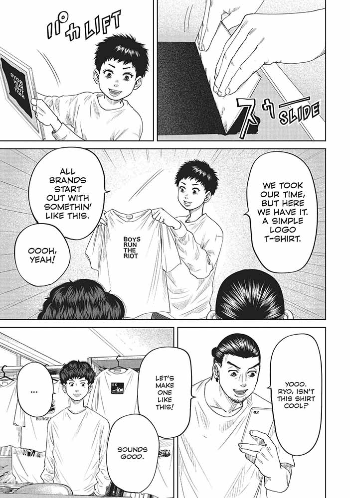 Gaku skilfully interweaves additional social commentary into chapters of Boys Run the Riot that further elaborates on the challenges that Ryo faces. These include the obstacles that trans people face in the workplace, being outed without consent, family conflict, and the non-binary experience. The often unforgiving and mercenary world of fashion also gets its place in the spotlight.
