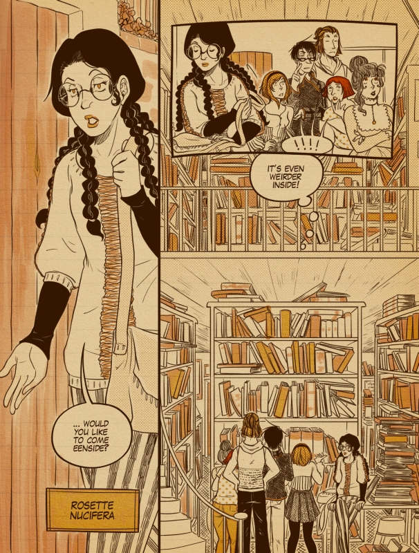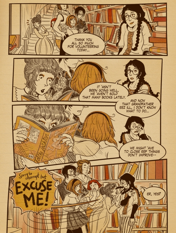 On the one hand this may seem a jarring shift of emphasis and the pacing of Cup 3 does, indeed, suffer a little in places from what feels rather like a rapid staccato burst of character entrances. On the other, however, this fleshing out of the cast allows the comic to evolve from its cutesy but fun adversarial premise to a far more solid ensemble piece. Cup 4 builds on this with a self-contained episode where the entire gang help out Rosette Nucifera, at the Little Nook bookshop after its owner, her grandfather, is taken to hospital. It’s an instalment that uses those multi-character intros from Cup 3 as the groundwork for a series of subplots dealing with the crew’s inter-relationships, rivalries and romantic attachments, and also adds a couple of extra characters to a now rather sprawling list of players.