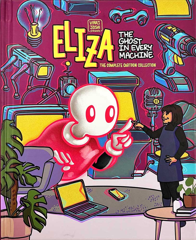 THOUGHT BUBBLE MONTH 2025! Viraj Joshi’s Eliza – The Ghost in Every Machine: The Complete Collection came us something of a revelation. If you imagine science comics as likely to be dry or a lifeless procession of expository information then be assured that Eliza – The Ghost in the Machine is neither of those things. Rather it is an absorbing compilation of cartoons and comics bringing complex ideas to the audience in an entirely digestible way.