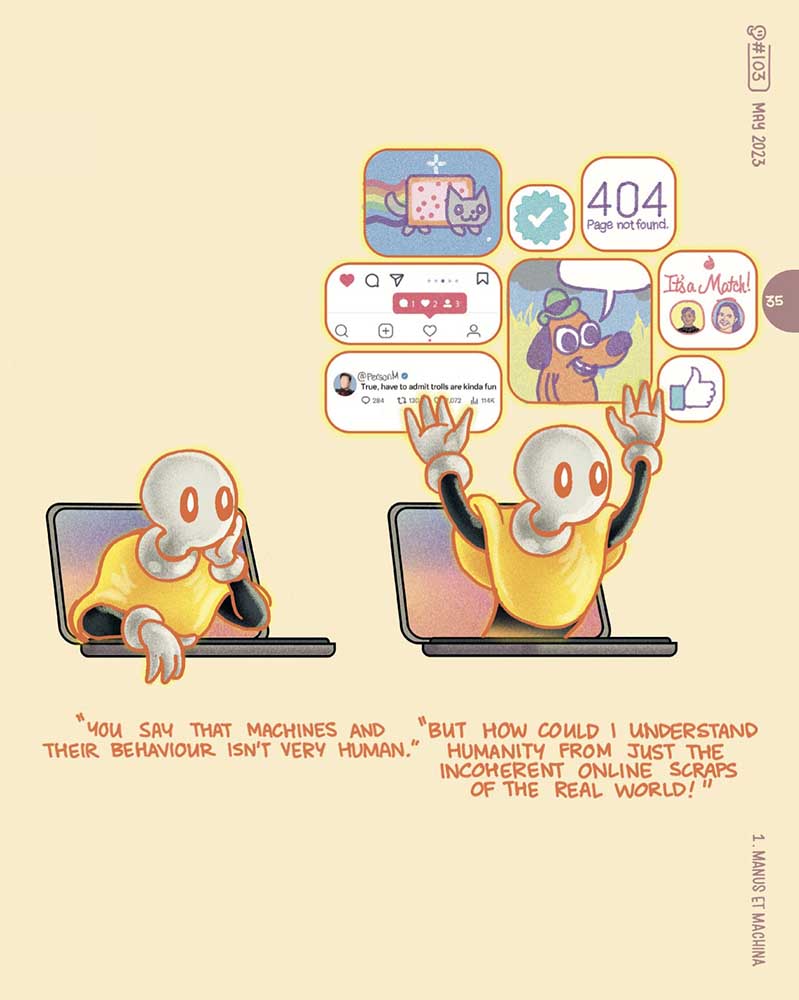 Joshi then takes us through chapters asking questions about a plethora of related questions, including humanity’s relationship with machines; whether artificial intelligence can ever truly be sentient; does technology amplify our capabilities or our complacency; and if we will ever be able to deal with other forms of digital life more intelligent than us? All of this embodied within clever one-page cartoons or short comic strips.