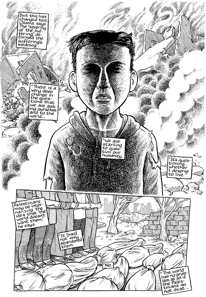 In a profound and elegiac work of investigative journalism, the writer Chris Hedges and the cartoonist Joe Sacco collaborate to present the testimony of displaced Palestinians who survived the genocide.