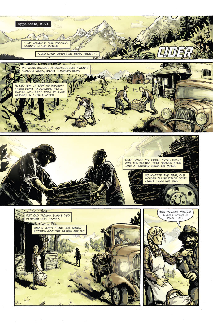 And finally, in ‘Cider’ a family of bootleggers consult an old family recipe in order to keep the police from shutting down their operation.