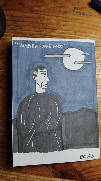 What is the format? We have a drawing theme for three sessions across the evening, this time with a holiday twist. We’ll post each of these prompts on Bluesky from the Broken Frontier account with the hashtag #GoshBFDD. The first at 7.30pm, the second at 8.15pm and the final round at 9.00pm.
