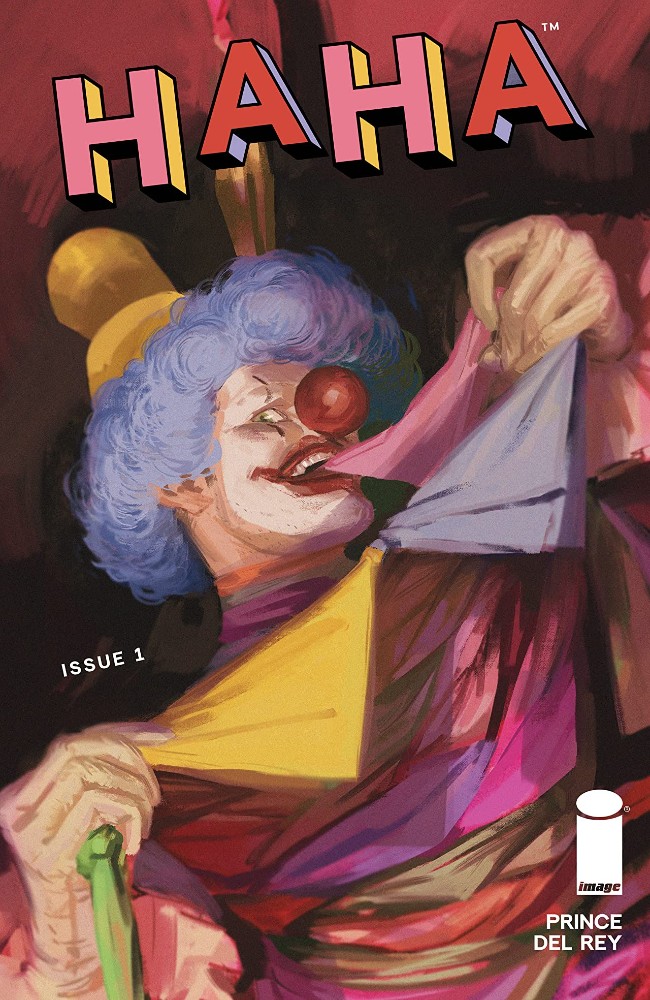 Two issues in and Image’s six-issue series Haha – a collection of complete-in-one stories revolving around the world of clowns – is already proving to be a bleakly comedic affair. Written by W. Maxwell Prince (Ice Cream Man) it uses a rotating cast of artists to tell tales that are essentially self-contained though, in the case of these first issues, still tangentially interlinked. It’s a series that could indeed be classified broadly as falling into the horror/thriller genres. But, so far at least, it’s proving is far more than yet another retread of that all-pervading creepiness of clowns motif. Instead it uses those gaudy harlequin trappings as a tragic and ironic counterpoint to very real stories of human frailties.