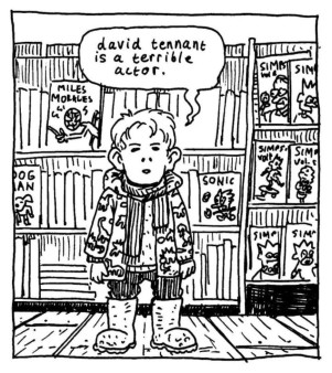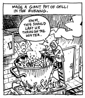 Like all the best diary comics Handlebar Gumbo succeeds not because of the minutiae of what it records but because of the way it brings us so empathetically into the world of its “protagonist”. Readman’s month is a catalogue of recognisable observational commentary: the frustration of Christmas displays going up in September; the banter and micro-culture that builds up between housemates; and the perils of the everyday commute to work. But it’s also a self-referential visual essay on the life of a budding cartoonist, and replete with knowing and engaging pop cultural references as the worlds of film, television, video games and comics bleed in and out of Readman’s urban life in a regular reality-bending procession.