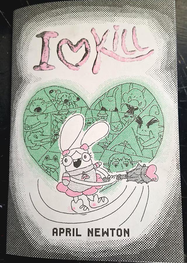 Whether you read something allegorical into I ♡ Kill or take it on a surface level this is a splendid escapist romp made all the more eerie for its risograph-inspired black, green and fluorescent pink colour scheme. Check out the full range of comics from April Newton at her shop link below.