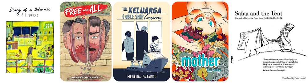 - Safaa and the Tent: Diary of a Cartoonist from Gaza Oct 2023-Dec 2024 (Safaa Odah, LICAF)