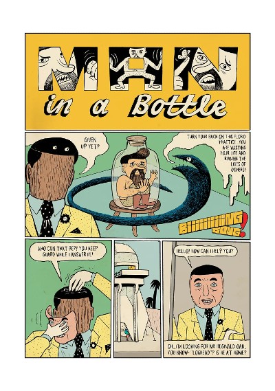 Trying to describe the plot of Jinx Freeze is something of a task in itself. It’s kind of the equivalent of (and I mean this in the very best way) an artist throwing as many different coloured cans of paint onto a wall as possible and seeing what the end result is. Characters dip in and out, storylines weave, diverge and digress, and frequent sidesteps into surreal cutaway moments punctuate this graphic novel. And, quite frankly, anything else would be a disappointment. The rejection of narrative coherence is an integral part of the fun (there’s even a recap page about two thirds of the way through to underline the fine points of the manic goings-on of the previous 90 pages) and very much vital to the frenetic, frenzied workings of Hurk’s approach.