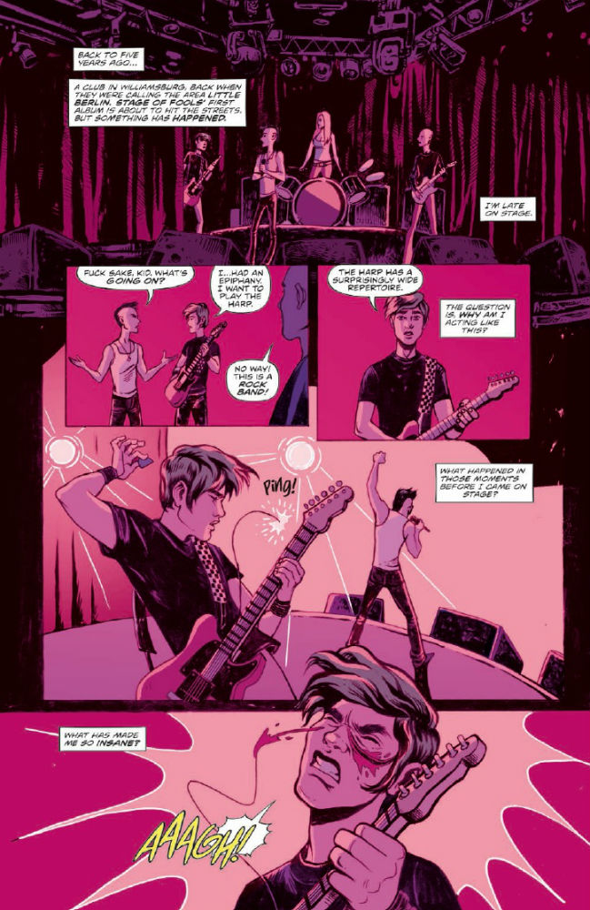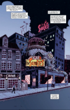 Milligan’s opener throws out far more questions than it has any intention of answering any time soon, positively immersing the reader in the madness of Kid Lobotomy’s world. This is an entrancingly patchwork book on so many levels. The narrative is splintered not just by this most undependable of unreliable narrators but also by the jumps in time and the unexplained (and possibly inexplicable) events that happened unseen between panels. It’s also a comic that sews together literary themes and motifs with an unashamed abandon and sets up an urban dynastic power struggle as an added pull on the reader’s attention.