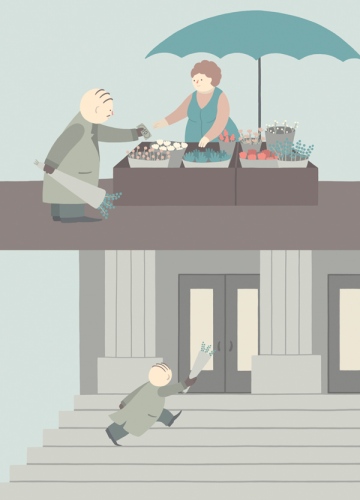 For the mini kuš! we usually invite artists with whom we have collaborated in the anthologies. Sometmes there are artists we havewanted to invite for a long time, but they didn’t fit in any anthology, so we invite them for a mini. When considering whom to invite, we apply the same principles as for the anthologies and look for artists with a distinctive style and interesting stories.