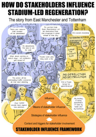 Lillywhite’s artwork is similar in style and effect to the comics journalism of Sophie Yanow, Kazimir Lee and others published on The Nib. There is a looseness to her linework that has the appearance of being a sketch, something produced on the fly in the field. Her style, however, is resolutely Angophile in its inspirations — I got shades of Posy Simmonds and Janet Ahlberg in her portraits of locals, Spurs board members and councillors. Putting a face to the quotations from Panton’s thesis humanises them considerably. All it takes is the addition of a soft caricature and a speech bubble to remind you these are real human beings, authentically furious and heartbroken about what it being done to their community. It makes them far less easy than dismiss than if they were treated as mere statistics, as one suspects Haringey Council and Spurs find it easy to do.