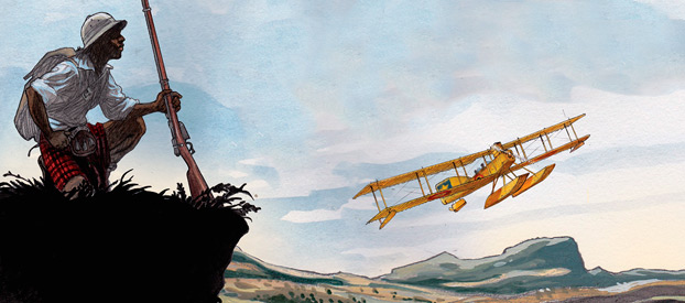 Gaston Mercier is an officer piloting a Short Admiralty 184 seaplane, stationed in the Belgian Congo (now the eastern region of the Democratic Republic of the Congo). Tasked with finding a German warship, the Graf von Götze, in order to gain control of the massive Tanganyika lake in Central Africa, he befriends Madame Livingstone, a kilt-wearing native claiming to be the son of David Livingstone.