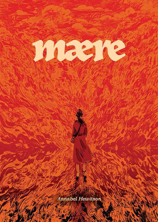 THOUGHT BUBBLE MONTH 2025! Do you ever spot a graphic novel or zine cover that instantly stops you in your tracks? Mære by Annabel Hewitson is one of those. Reminiscent of B. Mure’s distinctive sketchbook style, the cover shows a lone figure with their back to us, staring into an onslaught of all-consuming flames. Look closer, and hidden faces and eyes flicker within the fire – a haunting detail that foreshadows the darkness within.