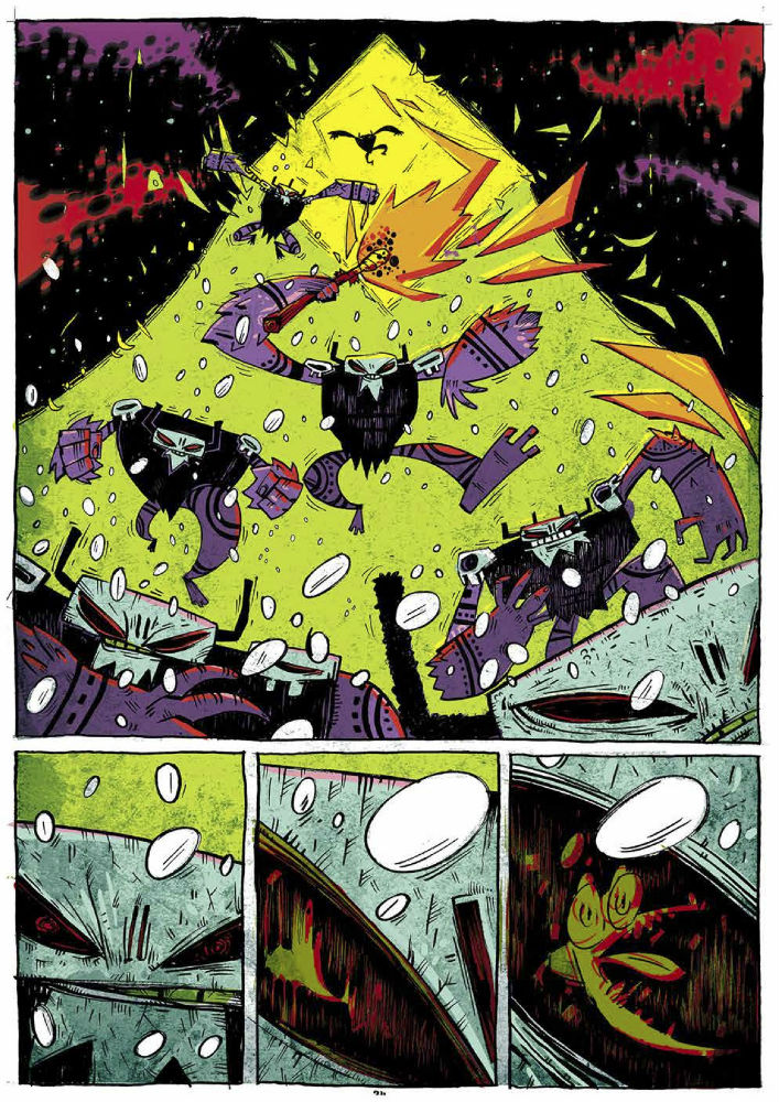 Of course if you do want to simply immerse yourself in Rybarczyk’s gloriously madcap characters and kinetic sense of motion then that option remains open to you as well. His panel-to-panel storytelling in the final climactic section of Staring from the Hill bursts with vitality: it’s inventive, imaginative and effortlessly draws the reader into the action.