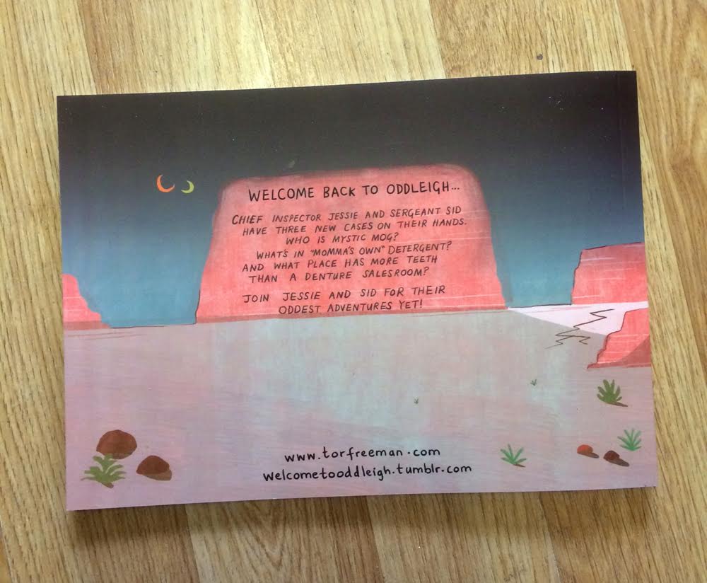 The print edition of Tor Freeman’s webcomic Welcome to Oddleigh – detailing the adventures of Chief Inspector Jessie and Sergeant Sid and the strange adversaries they encounter – was a comic I found to be an all-ages delight when I reviewed it here earlier this year at BF. That’s hardly surprising in one sense in that Freeman has a background in children’s illustration with books like Digby Dog Saves the Day, Digby Dog Delivers, Olive and the Bad Mood and The Toucan Brothers, and was also awarded a 2012 Sendak fellowship.