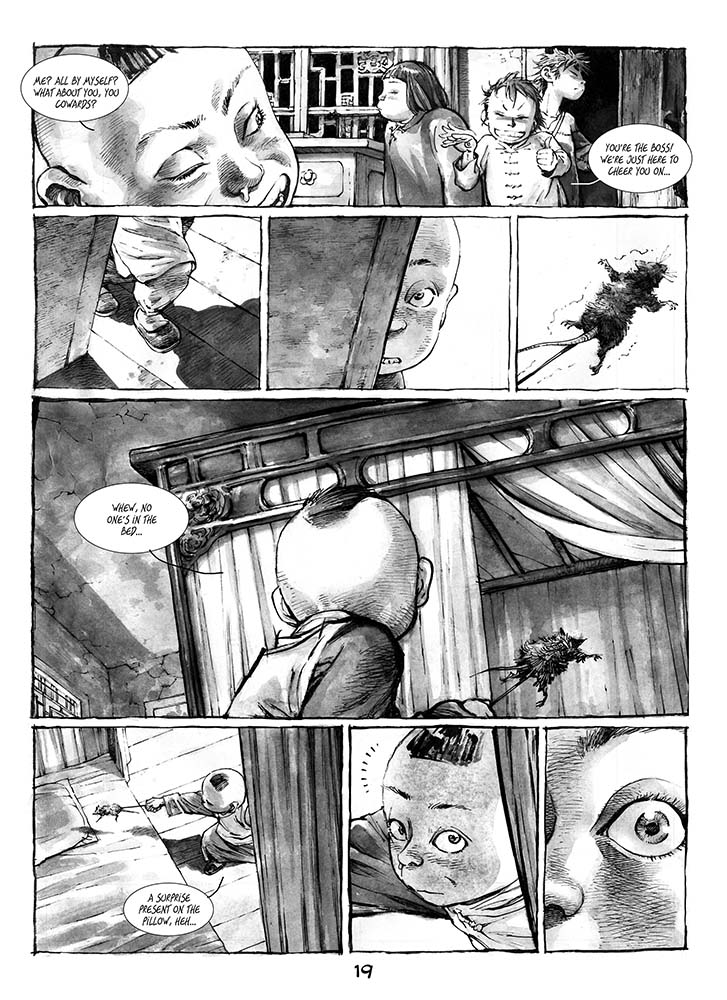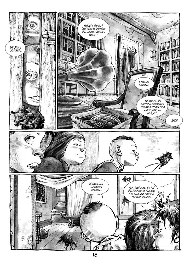 TWIN LOTUSES follows a Chinese orphan known as Stink Head, whose life changes forever when he befriends Fan, a Chinese engineer who built an extraordinary clockwork automaton that performs at a local theater. Meanwhile, war rages throughout the city, and orphaned children run wild under the direction of local potentates in an attempt to thrive and survive. When those potentates take notice of the mysterious beauty at the theater, suspicions and desires start to grow, and Fan’s history with his invention comes into heartbreaking focus. Mix in an American airman, and the tensions of war, and things build to an explosive finale.