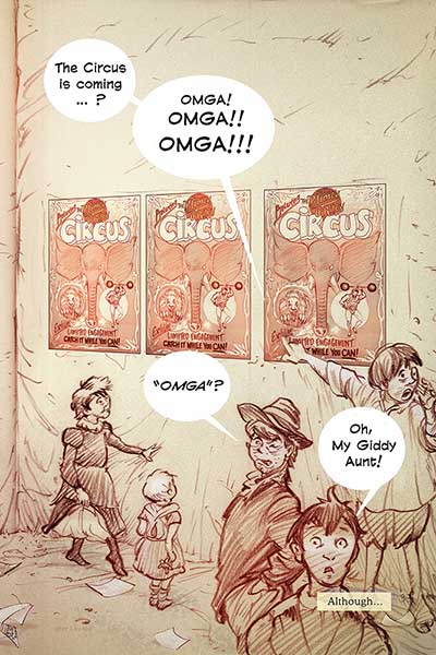 The travelling circus is the focal point of the plot. Like the newly joined worker Francis, its world gradually unfolds to us as a mysterious realm. Its strange personalities, many deceptions (like a dog with a mane standing in for a lion), the mixed language, rules, and secrets make it a rich visual and narrative resource for the artist to draw from. A deeper look into this setting reveals that ILYA intended the setting as a microcosm of the present world, which is chaotic, uncertain, and performative.
