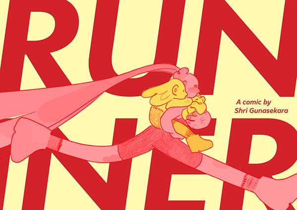 THOUGHT BUBBLE MONTH 2025! Experimental comics work is, as all our readers know, a huge part of our coverage remit here at Broken Frontier. As such, work like Shri Gunasekara’s Runner is exactly the kind of practice we like to spotlight on the site. Published by Inky Fruit Co. it is presented in a landscape format and, while this review is via a digital copy, it’s also handcrafted and printed in riso which surely gives it an extra tactile quality for those who savour such things.
