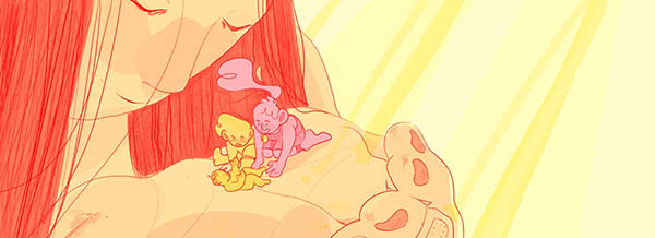 Runner follows the story of a girl fleeing the danger that seems to be always just one step behind her. In her flight she carries her younger siblings on her shoulders always keeping just ahead of peril as she follows in her mother’s footsteps. It’s an extended visual metaphor dealing with themes like responsibility, repeating patterns and generational trauma; one that uses the physicality of its presentation and structure to feed into its exploration of those ideas.