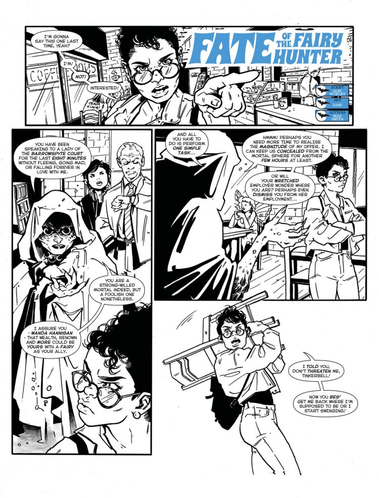 It seems only fitting that there should be at least one complete-in-one story in this edition given that Scream! and Misty were both so fond of them. Alec Worley and Dani’s ‘Fate of the Fairy Hunter’ travels the well-trod Future Shock-style route but, again, there’s something about this four-pager of revenge from another realm of existence that simply begs for a follow-up, despite its ostensibly self-contained nature. Especially given Dani’s memorably malevolent villainess…