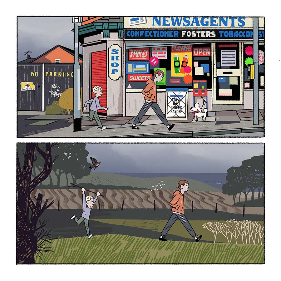 Every so often someone comes along with a debut comic so fully formed that you could be forgiven for thinking they had been working in the industry for decades. That’s how I felt after reading Chris King’s first comic Cold Chips, described as “a comic about kicking your heels on the North Yorkshire coast, sibling rivalry and……..Wolves!” A Thought Bubble-premiering book in 2024, it is an astonishingly confident debut.