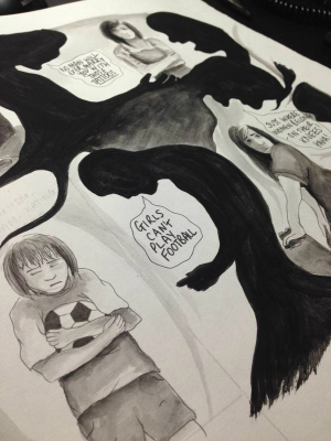 After that, I do a loose script to figure out pages, and then go deeper and look at how I can utilise panels and the good ol’ ‘power of the page turn’ to my advantage, and then mock it all up. It’s a science, really! After the roughs are drawn up in a mock-comic I tend to dive straight in and work it out as I draw. University like you to draw everything about twenty times before doing the final piece, but I prefer working it out as I go along as it feels more natural that way, especially important with telling an emotive story. Or so I think, anyway!