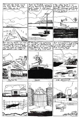 The very first BF article I read was about Oliver East’s latest comic, The Homesick Truant’s Cumbrian Yarn where Andy suggested one order it, which I promptly did. There was a delay in its arrival, and Oliver East kindly sent me another one as we both presumed it had gone missing in the post. It turned out one of my neighbours was a thief. Still, it was a treat when I finally got my copy, complete with picture on the envelope. I really enjoyed how the comic made me feel like I’d gone for a stolen walk. It bristled with textures as the panels guided me through a variety of spaces, looking close up at things, and sometimes far away. I hope the thief liked it too.