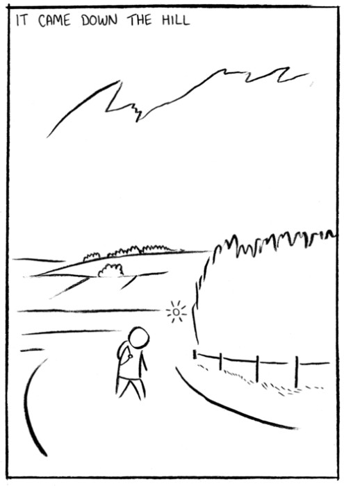 Every time I read a Simon Moreton comic I’m struck by how the more reductionist his art becomes the more expressive it is. That’s never been more in evidence than in the final minicomic in this set which is a lingering look at that April visit to Caynham that he made years later revisiting those childhood stamping grounds. It works in harmony with the other two stories to create something far greater than the sum of its parts; each of the three books echoing and mirroring the perspectives and emotional ranges of the others.