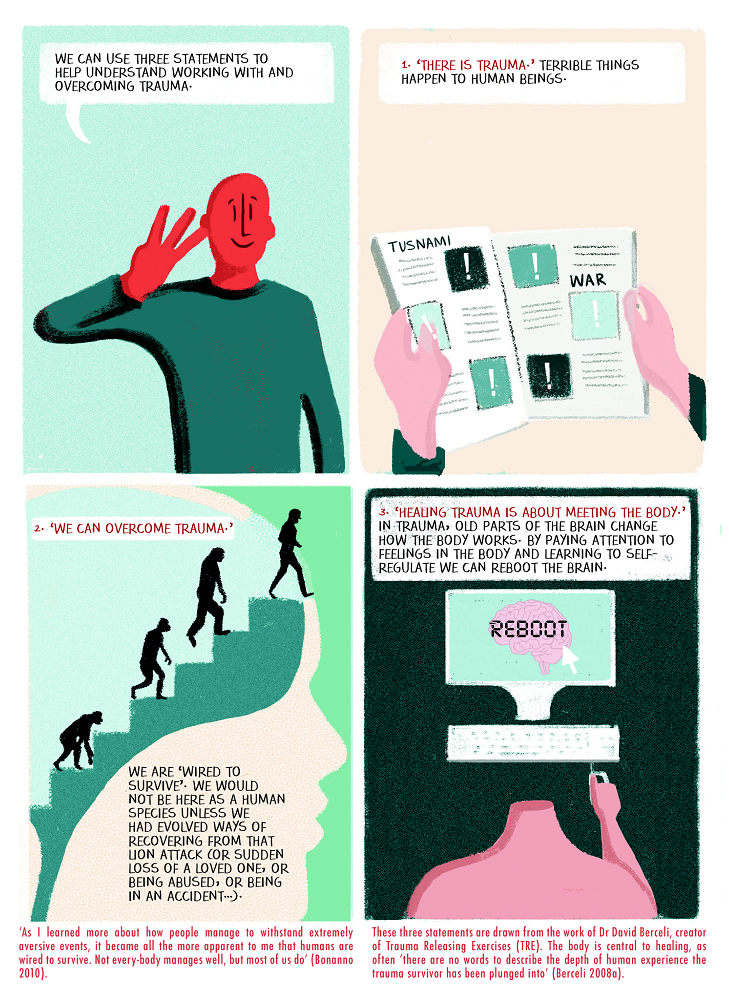 Their most recent title, Trauma is Really Strange, looks at how traumatic experiences can overwhelm us and disable our bodies’ normal processes, leading to a state of dissociation. Through a mix of scientific research and visual metaphor, its authors suggest that changes to the body’s physiology can resolve the deep muscular patterns of stress and trauma.
