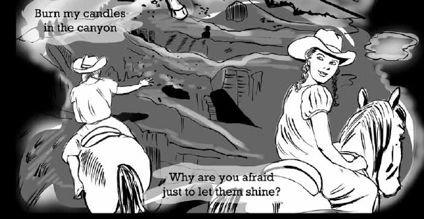 Everyone involved in Tempo Lush Tales of the Tanoox gets a spotlight bio and a chance to speak briefly about their own ideas for positive change. The group effort that the book embodies is perhaps best illustrated in ‘Bugleberry Tree’, the jam story where a dozen creators take a page each to illustrate the lyrics of a Chandler-penned song. It includes graphic novelists like Rachael Smith and Jessica Martin (below) alongside some established names on the small press scene including John Miers and Sally-Anne Hickman, and also with creators on the beginning of their comics journey such as Kim Clements whose work both myself and the Forbidden Planet International Blog’s Richard Bruton have been urging you to check out of late (read Richard’s recent comments on Clements here).