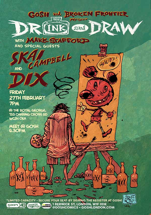 The Gosh! Comics and Broken Frontier Drink and Draw In-Person returns for iat our new venue of The Royal George on Friday, February 27th, 2026. And this time we have a super artist line-up of Rein Lee, Matthew Dooley and Mark Stafford.