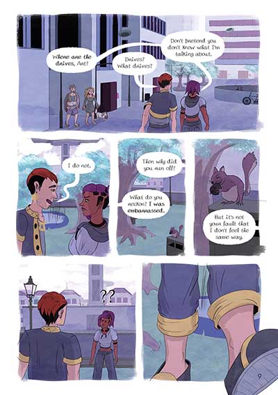 The Last Day of Rain #3 and #4 see the story shifting its focus more to a human interest focus as Carol searches for the aforementioned disappeared Art in the third issue, worried that he was the one who absconded with the purloined data. It’s a journey that takes her to the underground Shiba Town where the elite keep themselves safe from the burnt-out world above. In #4 we continue to explore the relationship between the two as the questions surrounding the missing data drives and Art’s confusing behaviour continue to hang there in the background…