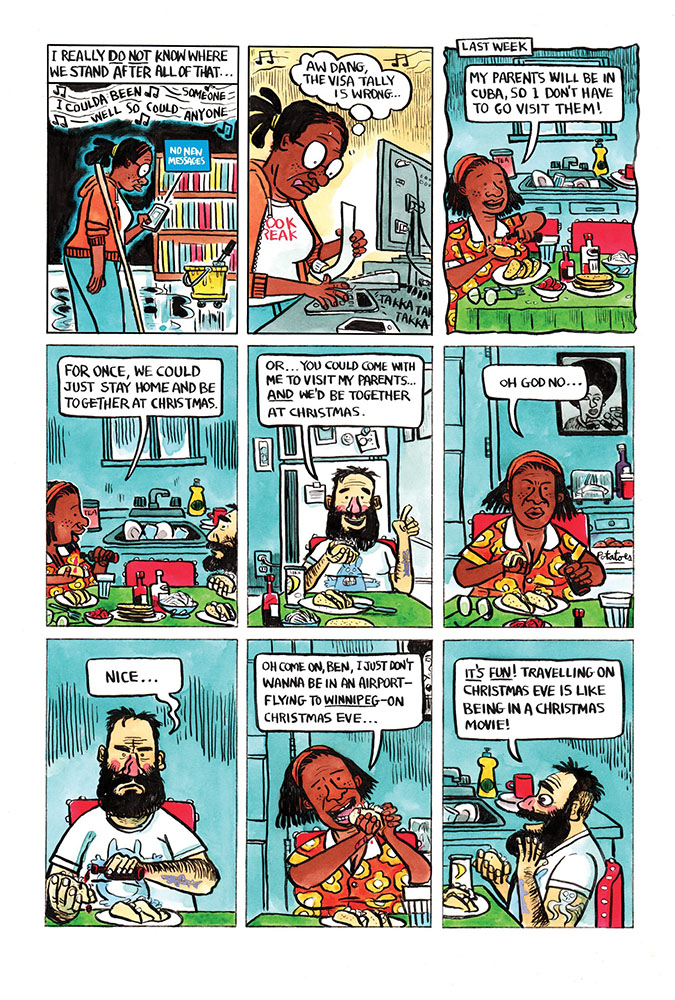 An interesting assessment of Joe Ollmann’s work appears early on in his own introduction to this latest collection. It comes from the late American critic Tom Spurgeon who once reportedly described the endings of Ollmann’s stories thus: “There’s a lovely thought that seems to connect a few of the stories where the protagonists kind of let themselves off the hook a bit, providing their own moments of grace.” It is, as the cartoonist points out, a wise opinion, and one that is more than justified when one reads The Woodchipper.
