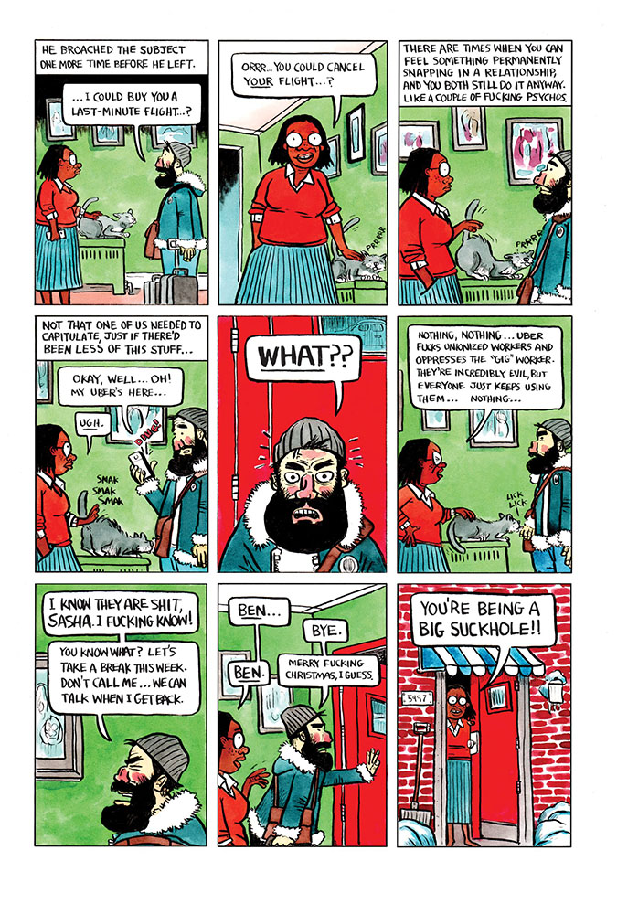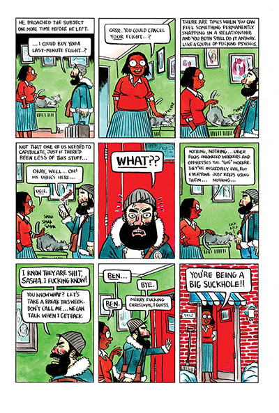 A couple of years ago, while promoting his book Fictional Father, Ollmann told Broken Frontier how he believed that “people who really get things, have been through the shit in some way…like they operate at a different level of compassion and understanding due to their experience.” The characters who appear in The Woodchipper all share that sense of empathy drawn from some everyday experience that invariably leaves a deep impact on their individual psyches. The title story, for instance, is a masterclass in how a seemingly innocuous incident can have life-altering consequences. Nothing awful appears to happen, and yet, the anxieties faced by Ollmann’s troubled protagonist seem all too plausible. It is amusing and unsettling in equal measure.