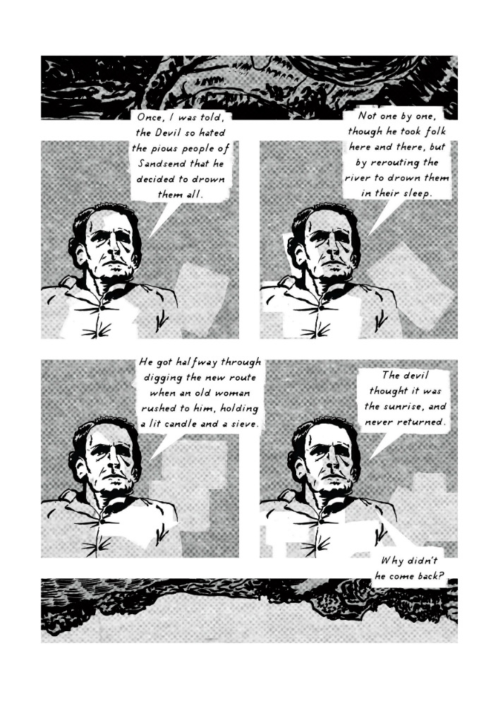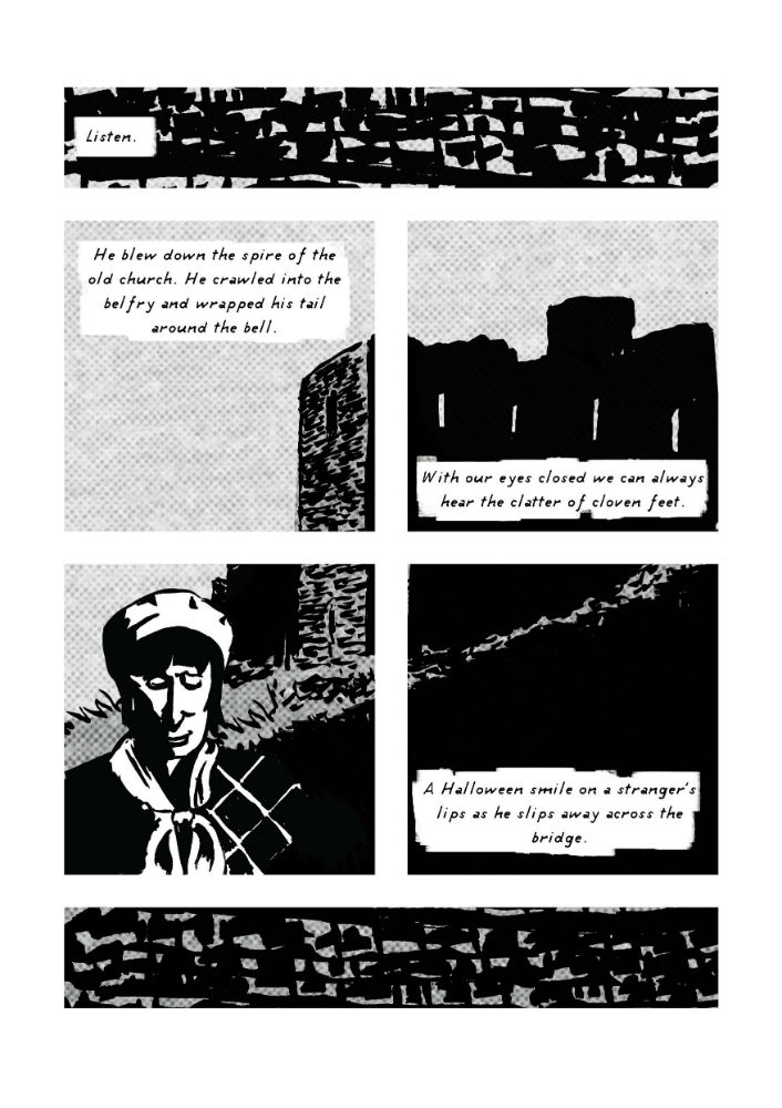 […] Horrible Folk is a monologue for twenty-eight voices concerning devils, the landscape, old stones, older gods, ordinary murder and many of the other crimes of man. Built out of the faces in the backgrounds of British horror films, and sites sacred and profane from the British landscape, it’s a singular comic experience that demands to be read and savoured. What shadow stretches out behind the devil? Who was the stranger in the lane? Horrible Folk points the way. A preview of the first four pages can be found on Broken Frontier. […]