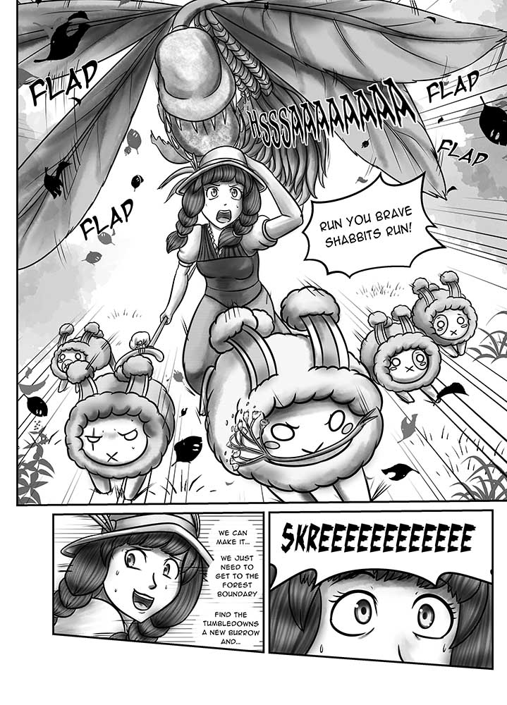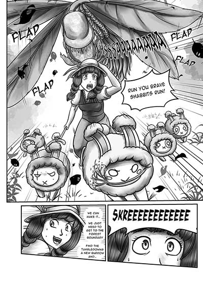 The worldbuilding is excellent throughout: readers are quickly immersed in the lore and the fascinating creatures that inhabit this realm. Lost souls often steal the bodies of plants, twisting them into monstrous weeds that threaten to overrun the land… if not for the bravery of the shabbits, rabbit-like guardians with mysterious powers. Our protagonist, Capri, has lived her whole life in the Phantom Field, working as a shabbit shepherdess who guides and protects these creatures. When a wizard summons her for help, Capri soon discovers her greatest adventure is only just beginning…