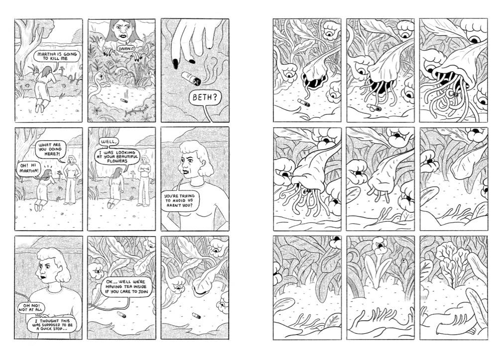 Body horror can be used to stunning effect in the right hands but can just as easily deteriorate into cliché if its purpose is merely to shock. Lebleu deploys it to make pointed statements about relationships between these characters, and her weeds take on menacing aspects that mirror the ruthlessness with which people can harm each other while maintaining a façade. Her women aren’t even safe from their own relatives.