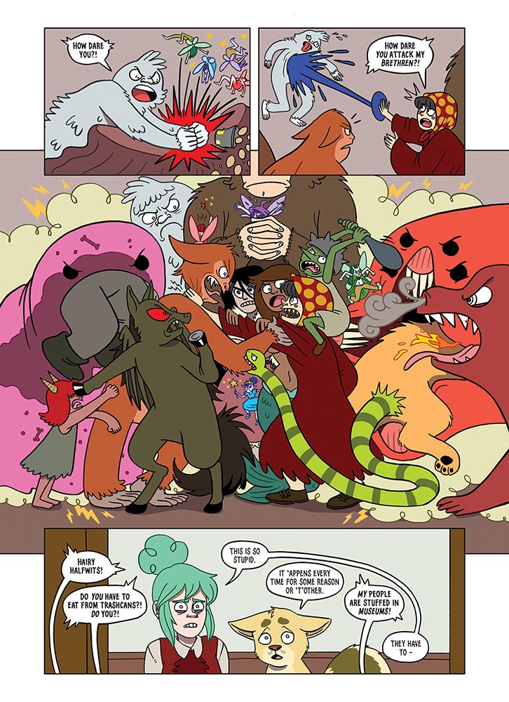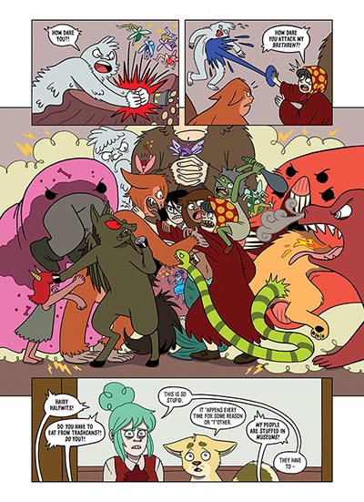 To a degree the central mystery of Who Killed Nessie? isn’t even the real draw of the story – that’s reserved for the character set pieces as Lindsay interviews the various cryptids and mythological creatures. Cornell and Smith have a sparkling creative chemistry here, complementing and elevating each other with a rare alchemy as witty dialogue and knowing visual characterisation work in perfect storytelling synthesis. Smith’s character design is inspired and imaginative and, while this is a complete-in-one narrative, it leaves the reader hoping the duo will one day return to this world where the Kraken, a centaur, Slender Man and the Japanese Tsukumogami all live and interact together in one strange fantasy arena.