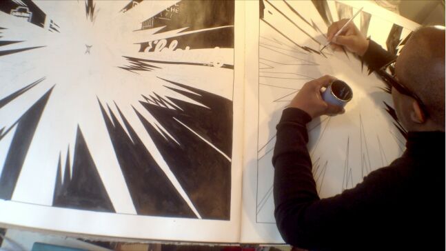 Of all the exhibits at the Comics Unmasked show – running at the British Library until August 19th this year – one of the most intriguing by far is Woodrow Phoenix’s labour of love She Lives. A one metre square, 82-page graphic novel, this astonishing undertaking is a true celebration of the potential of the form from the creator who gave us the powerful graphic journalism of Rumble Strip.